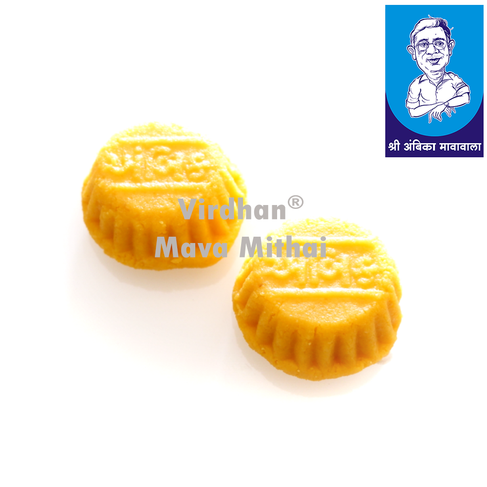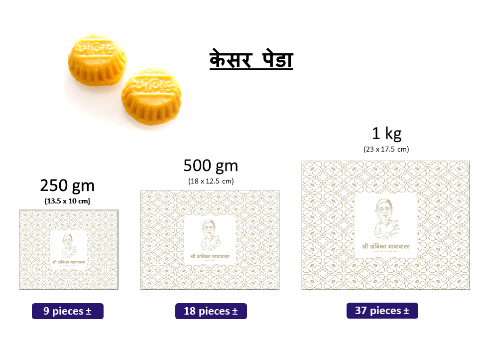 - Each peda is carefully shaped using a cylindrical mold and stamped with the traditional “અંબિકા” coin imprint, reflecting our heritage and quality craftsmanship.